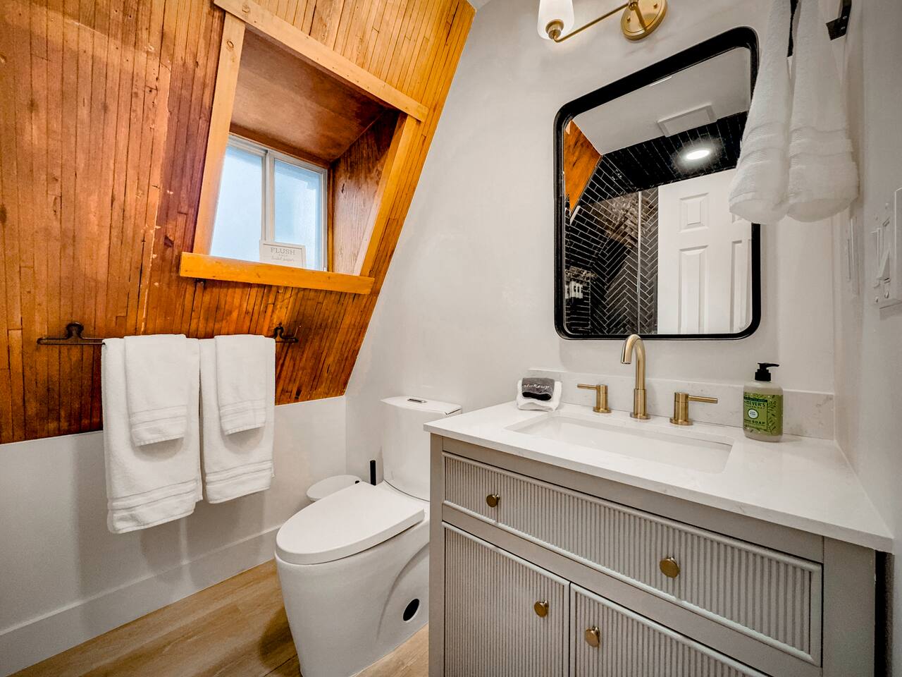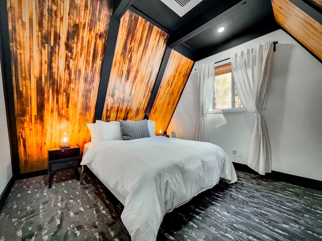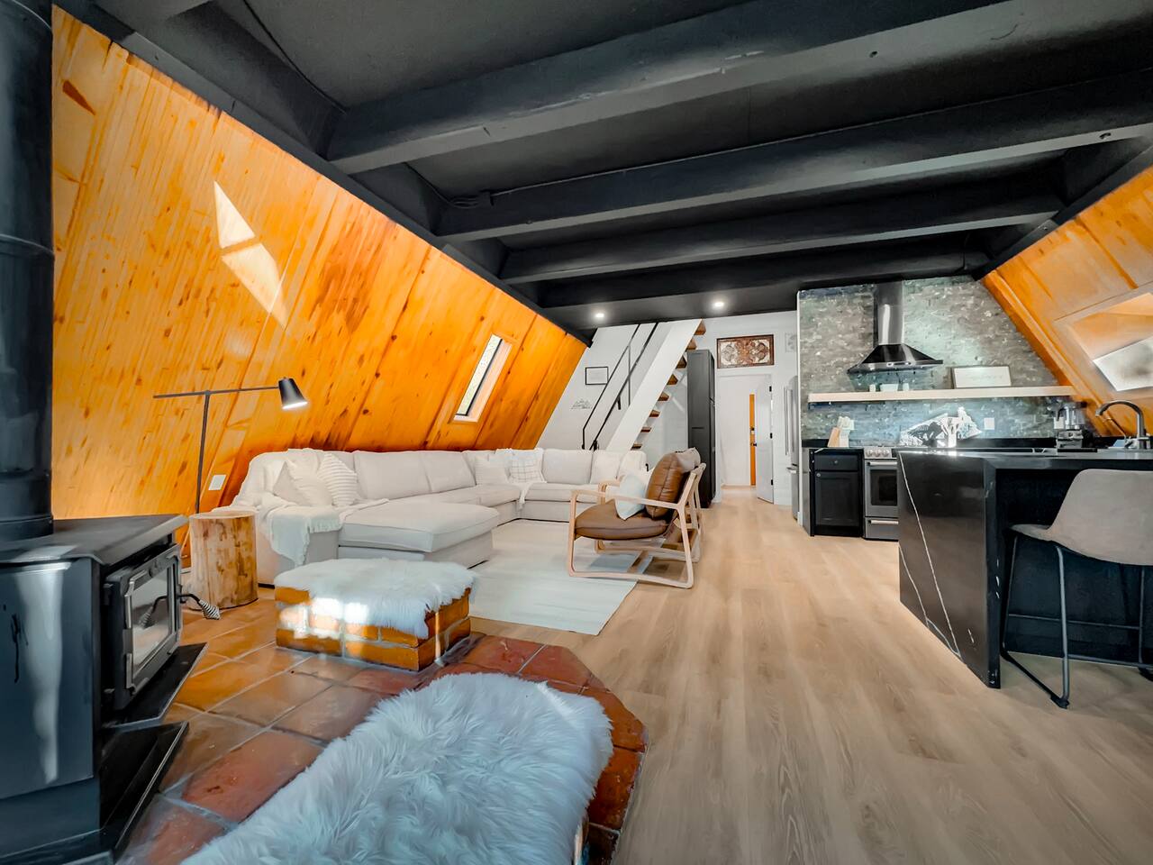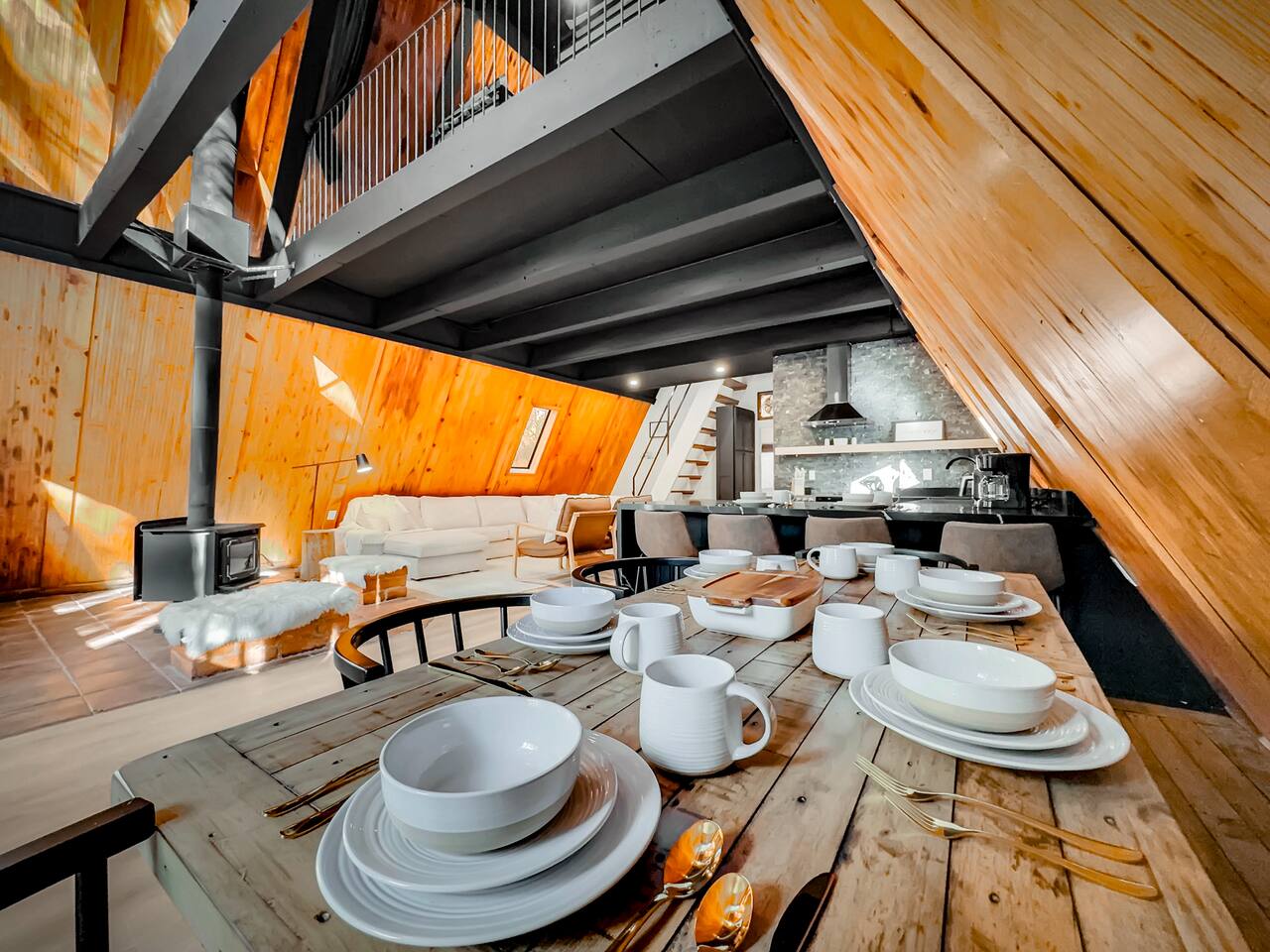 Completely surrounded by pine trees, this magical A-Frame cabin has been completely remodeled with a modern luxury spin. Escape the busy and find relaxation here. Enjoy the massive front deck that looks out into the numerous tall pines surrounding the property. Cozy up inside while enjoying the fully stocked luxury kitchen. Rest easy in comfortable King & Queen sized bedrooms. Adventure upstairs to a large loft with fun bunk beds. Unforgettable memories are made here in this unique place. Enjoy!
